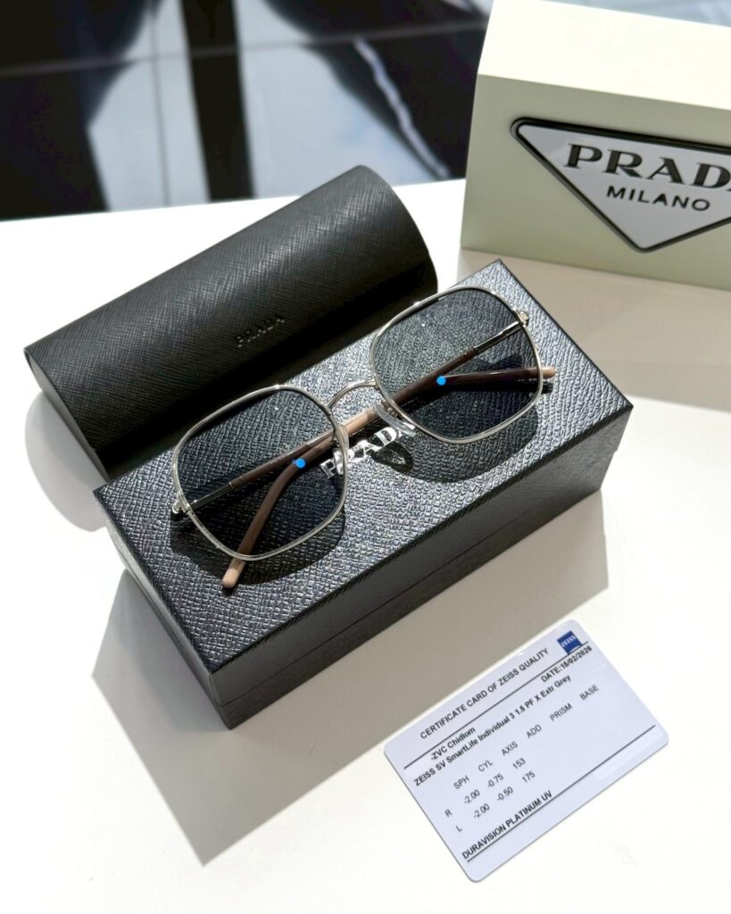 กรอบแว่นลูกค้า เลือกแบรนด์ “PRADA” รุ่น 56WV 1BC1O154 สำหรับกรอบแว่น PRADA นั้น ถือเป็น Luxury Brand เกี่ยวกับแฟชั่นเครื่องแต่งกายที่มีชื่อเสียงมาอย่างยาวนานโดยมีจุดกำเนิดในเมืองมิลาน ประเทศอิตาลี กรอบแว่นตาถือเป็นสินค้าตัวนึงของ PRADA ที่ได้รับความนิยมอันดับต้นๆ นอกจากคุณภาพอันเป็นเลิศแล้วยังคงไว้ด้วยดีไซน์ที่มีความยูนิค เปรี้ยว โฉบเฉี่ยว สมาร์ท เหมาะกับผู้ต้องการกรอบแว่นที่แข็งแรง มีเสน่ห์และเอกลักษณ์เฉพาะตน