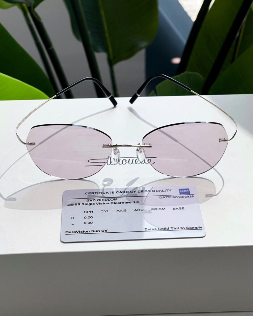 เลนส์ที่ลูกค้าเลือกใช้ในครั้งนี้คือ ZEISS 1.60 Single Vision ClearView Platinum DuraVision SUN UV Tint Burgundy 40% (LAB) ซึ่งเป็นนวัตกรรมเลนส์สายตาชั้นเดียวที่ใช้การคำนวณโครงสร้างละเอียดถึง 700 จุด เพื่อขยายมุมมองให้กว้างชัดกว่าเลนส์ทั่วไปถึง 3 เท่า โดยตัวเลนส์มีความบางและแบนพิเศษเพื่อความสวยงาม