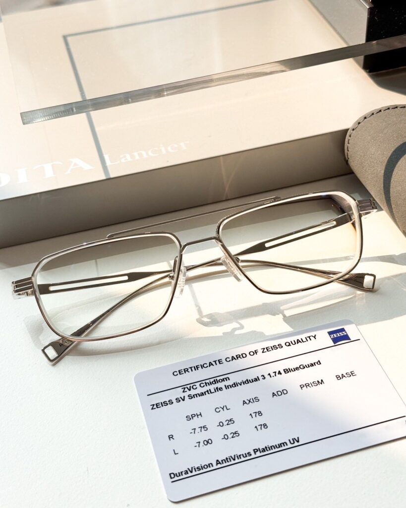 ครั้งนี้ลูกค้าเลือกเลนส์ ZEISS 1.74 SmartLife Single Vision Individual 3 BlueGuard DuraVision AntiVirus Platinum UV (LAB) เป็นเลนส์เฉพาะบุคคลที่ดีที่สุด ย่อบางสูงสุดโดยเลนส์รุ่นนี้เป็นเลนส์เฉพาะบุคคลรุ่นที่ดีที่สุด เนื่องจากมีเทคโนโลยี Intelligence Augmented Design ที่พิจารณาพฤติกรรมการเคลื่อนไหวของดวงตา ควบคู่ไปกับปัจจัยทางกายภาพและสรีรวิทยาของดวงตาในแต่ละบุคคล ผลิตเลนส์ที่ทำให้การเคลื่อนไหวของตาเป็นธรรมชาติ เสมือนดวงตาจริง ส่งผลให้การใช้งานสบายตามากขึ้นครับ