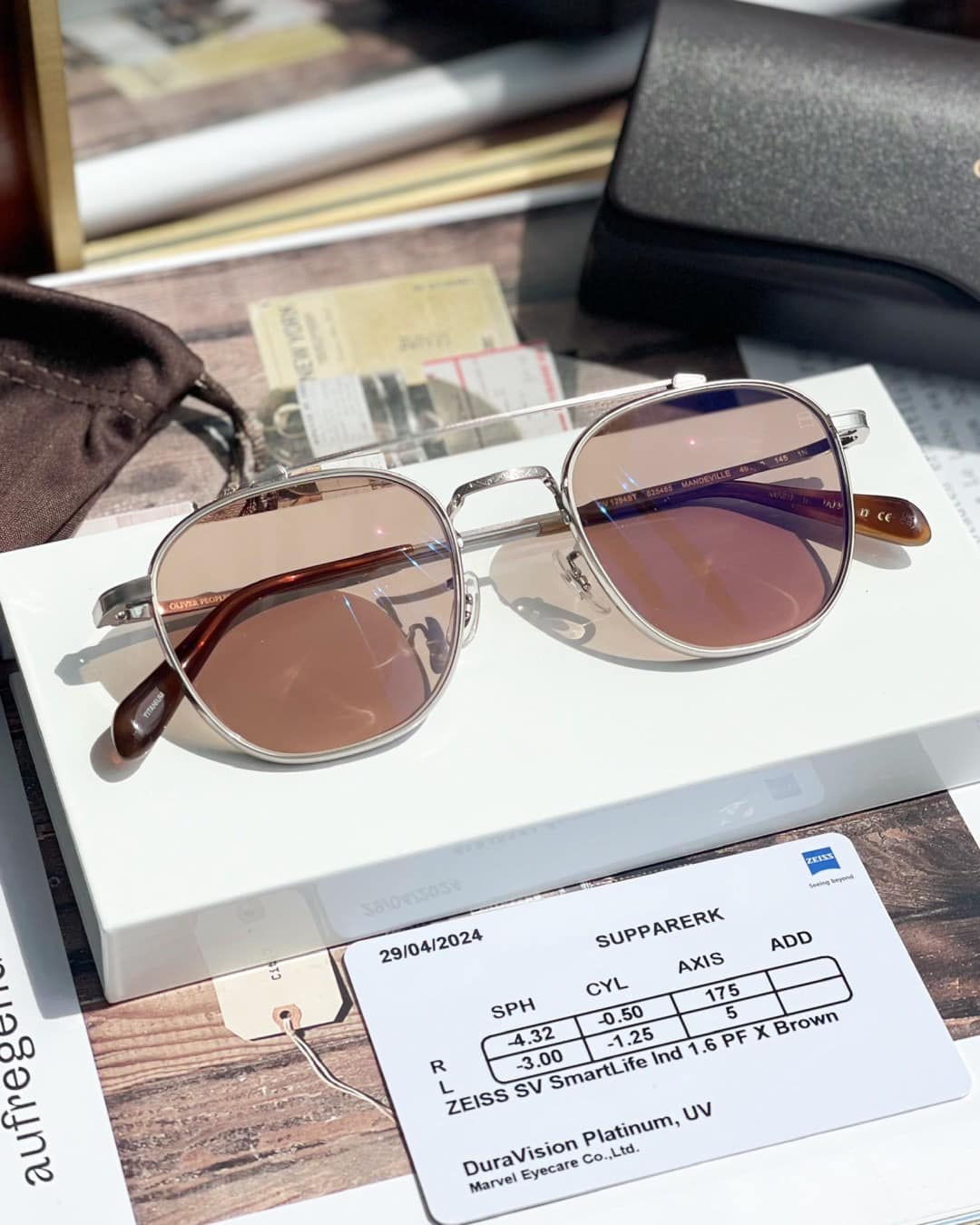 เลนส์ลูกค้าเลือก ZEISS 1.60 SmartLife SingleVision Individual PhotoFusion X Brown DuraVison Platinum UV เป็นรุ่นเลนส์ที่ใช้เทคโนโลยีในการขัดอย่างละเอียด FreeForm Technology ทำให้ภาพที่โค้งที่เกิดจากความหนาของเลนส์และค่าสายตานั้นน้อยลง ทำให้มุมมองที่ได้กว้างขึ้น มองสบายตามากขึ้น มาพร้อม SmartLife Technology ที่ช่วยทำให้แสงผ่านเข้าตาได้เหมาะสมมากขึ้น ลดการฟุ้งกระจายของแสง ช่วยให้ภาพนุ่มนวลสบายตามากขึ้น
