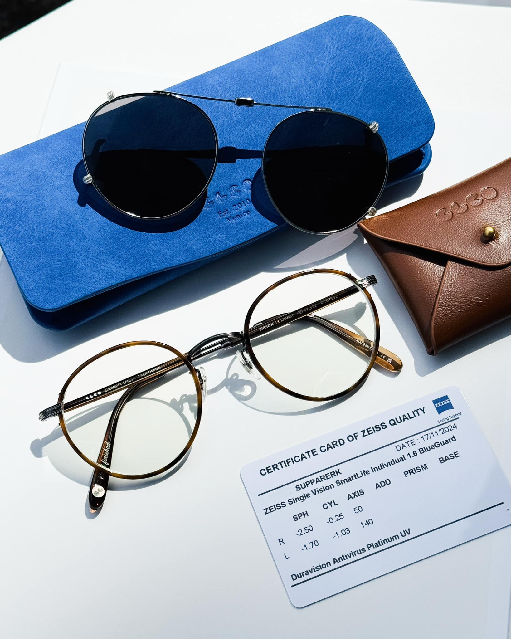 ครั้งนี้เลนส์ที่ลูกค้า เลือกใช้คือ ZEISS 1.60 SmartLife Single Vision Individual BlueGuard DuraVision AntiVirus Platinum UV (LAB) เป็นเลนส์เฉพาะบุคคลที่มีการขัดละเอียดแบบ Customized Freeform และใช้ค่าพารามิเตอร์ของแว่นขณะสวมใส่บนใบหน้าลูกค้ามาใช้ในการขัดเลนส์ ทำให้เลนส์มีมุมมองที่คมชัดและภาพบิดเบือนด้านข้างน้อยที่สุด โดยเฉพาะในผู้ที่มีค่าสายตาเยอะและค่าสายตา 2 ข้างต่างกัน