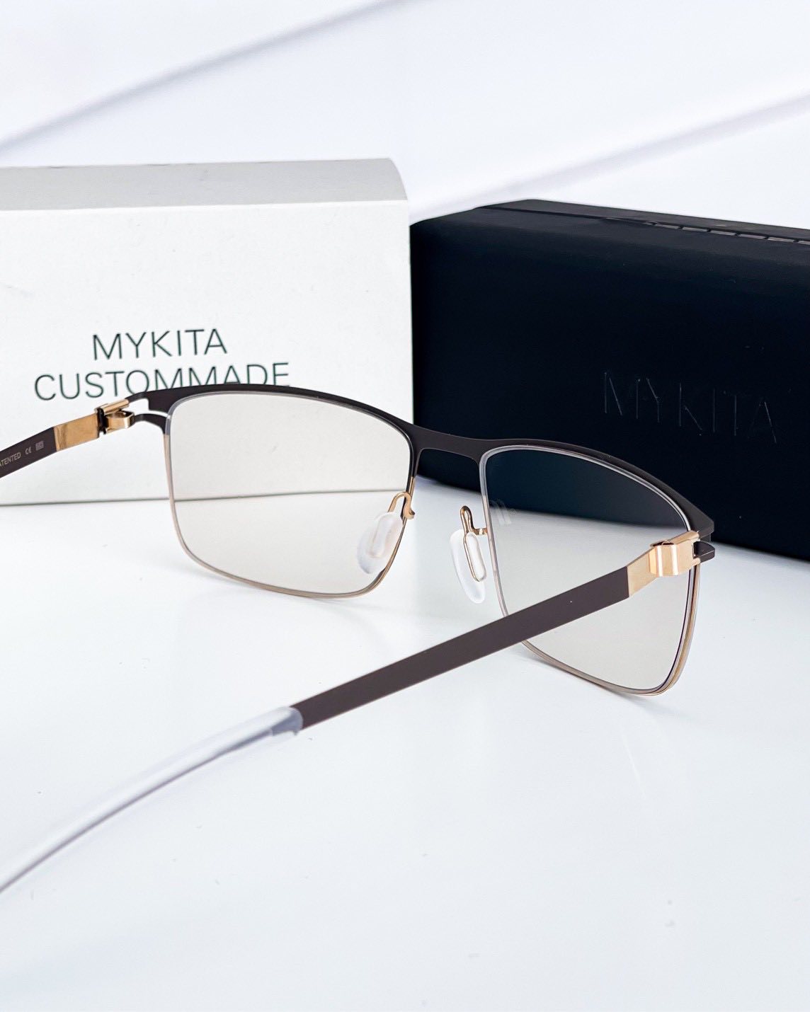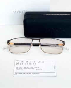 กรอบที่ลูกค้าเลือกเป็นกรอบ MYKITA รุ่น XANDER สี Gold/Black กรอบแว่นกลุ่มฟังก์ชันจากเยอรมัน น้ำหนักที่เบา วัสดุเป็น Light stainless steel ช่วยให้น้ำหนักของแว่นเบาเป็นพิเศษ มีความแข็งแรง สามารถใช้งานได้นาน ปลายขาแว่นหุ้มด้วยซิลิโคน ลดอาการระคายเคือง สวมใส่สบายขึ้น ลูกค้าตัดคู่กับเลนส์เปลี่ยนสีอัตโนมัติ สี Chestnut Brown กับเข้ากรอบสีดำทองได้อย่างสวยงาม