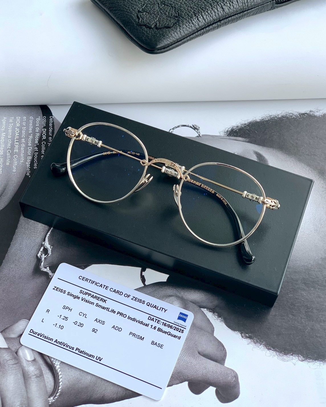 เลนส์ที่เลือกใช้เป็นรุ่นที่ดีที่สุดเหมือนเดิม คือ ZEISS 1.60 SmartLife PRO Single Vision Individual BlueGuard DuraVision AntiVirus Platinum (LAB) เป็นเลนส์เฉพาะบุคคลที่ดีที่สุดที่มีการขัดละเอียดแบบ Customized Freeform และใช้ค่าพารามิเตอร์ของแว่นขณะสวมใส่บนใบหน้าลูกค้ามาใช้ในการขัดเลนส์ ได้แก่ ความโค้งหน้าแว่น (Wrap Angle), มุมเทหน้าแว่น (Pantoscopic Tilt Angle) และระยะห่างตากับเลนส์แว่น (Back Vertex Distance) ทำให้เลนส์มีมุมมองที่คมชัดและภาพบิดเบือนด้านข้างน้อยที่สุด