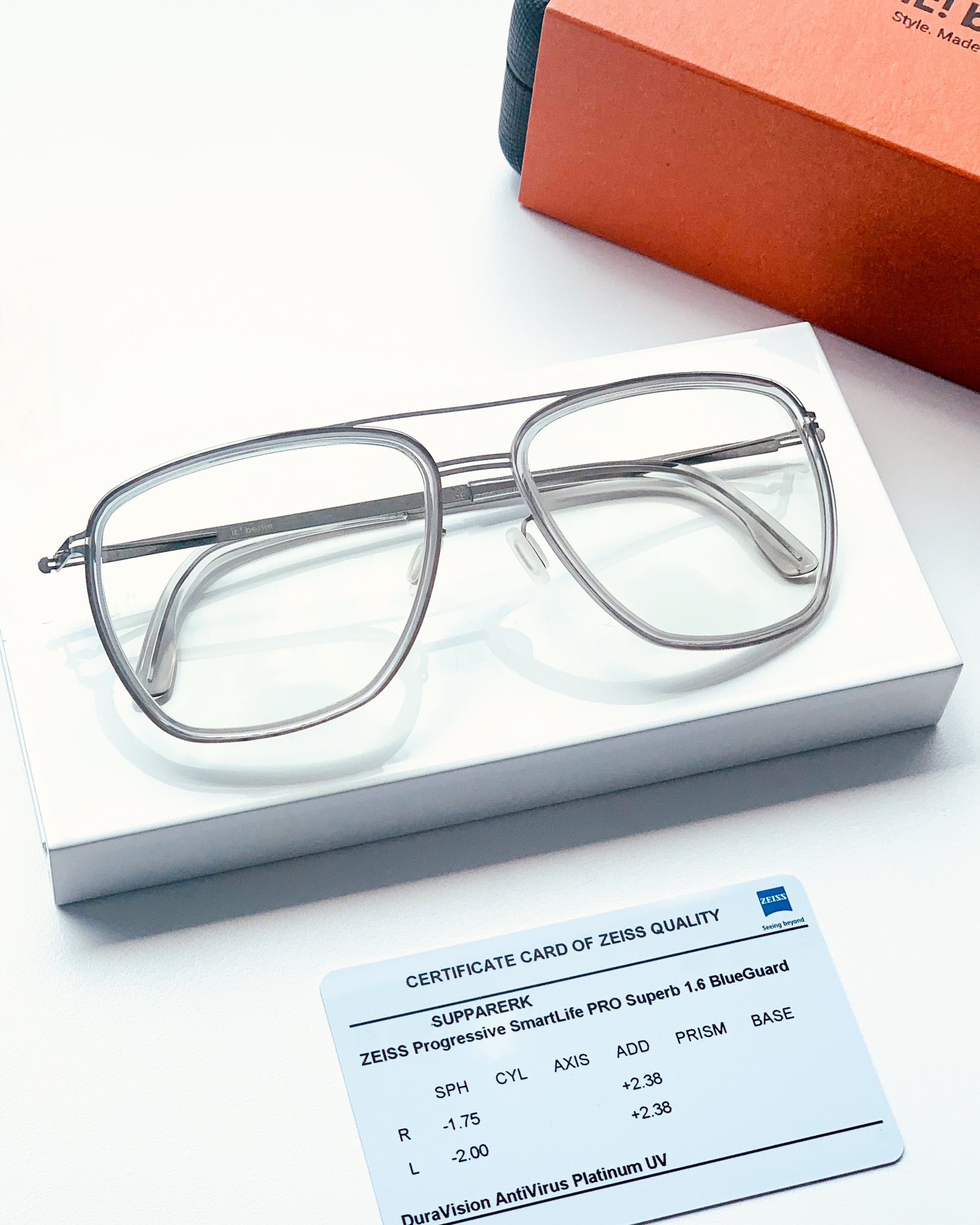 กรอบที่ลูกค้าเลือกเป็น ic! Berlin รุ่น IC magnus rough sky grey สีเทา กรอบฟังก์ชั่นกรอบแว่นตานำเข้าจากประเทศเยอรมันนี วัสดุสแตนเลสสตีลเกรดพรีเมียมระดับเดียวกับการทำเครื่องมือแพทย์ คุณภาพสูง น้ำหนักเบาสบาย เมื่อลูกค้าสวมใส่แว่นตัวนี้แล้ว ส่งเสริมบุคคลิกภาพให้ทันสมัยเหมาะสมกับลูกค้ามากครับ