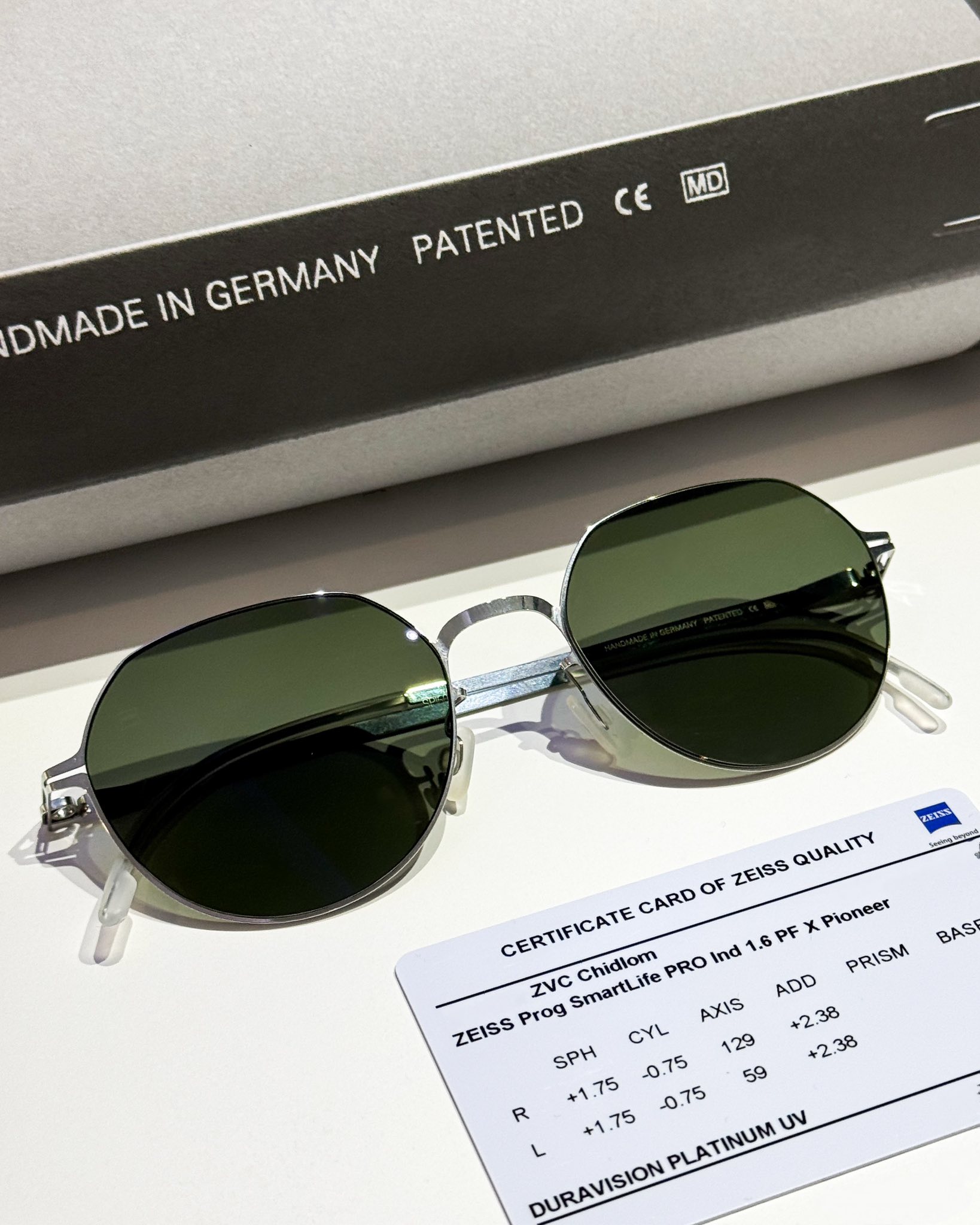 ลูกค้าเลือกเป็นเลนส์รุ่นที่ดีที่สุดรุ่นเดิม คือ ZEISS 1.60 SmartLife PRO Progressive Individual PhotoFusion X Pioneer DuraVision Platinum (LAB) เลนส์รุ่นนี้เป็นเลนส์โปรเกรสซีฟเฉพาะบุคคลรุ่นที่ดีที่สุด ด้วยการขัดเลนส์แบบ Customized Backside Freeform และใช้ค่าพารามิเตอร์ของแว่นขณะสวมใส่บนใบหน้าลูกค้ามาใช้ในการขัดเลนส์ ได้แก่ ความโค้งหน้าแว่น (Wrap Angle), มุมเทหน้าแว่น (Pantoscopic Tilt Angle) และระยะห่างตากับเลนส์แว่น (Back Vertex Distance) ทำให้เลนส์มีมุมมองที่คมชัดและภาพบิดเบือนด้านข้างน้อยที่สุด